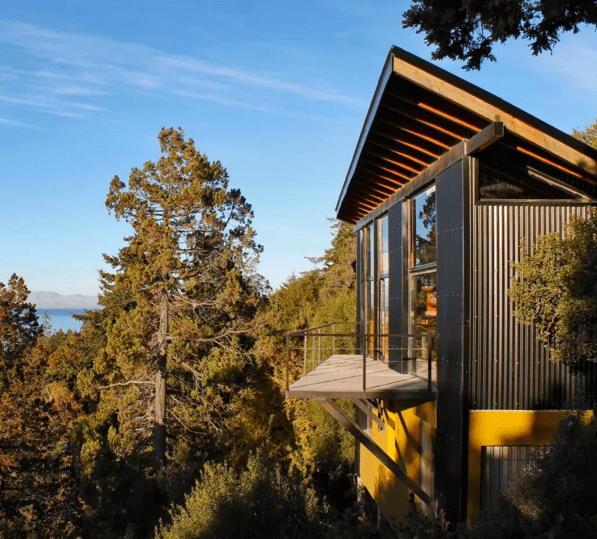 “The charm of this house is immediately upon entering this modern space full of life, bathed in sun and light. The living room, dining room and fully equipped kitchen share a completely open space with stunning views of Lake Nahuel Huapi. The wooden deck is the perfect place to enjoy a magnificent patagonian sunset!